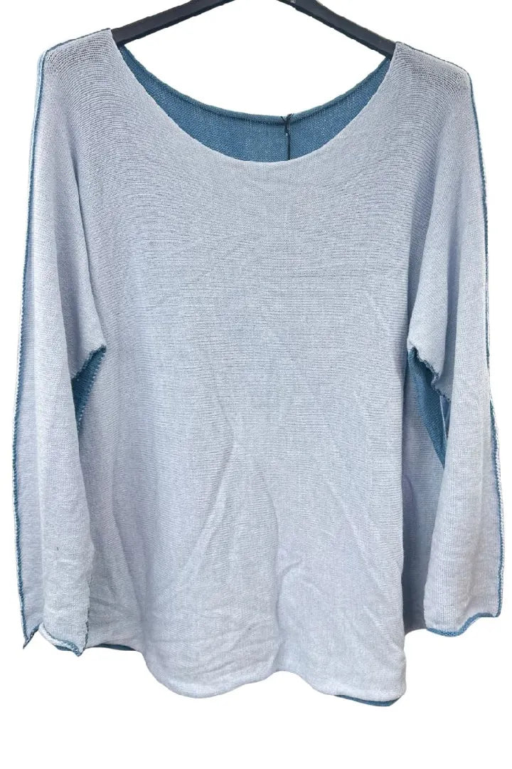 Made In Italy Women's Round Neck Long Sleeve Contrast 2 Tone Colour Soft Knit Jumper Top