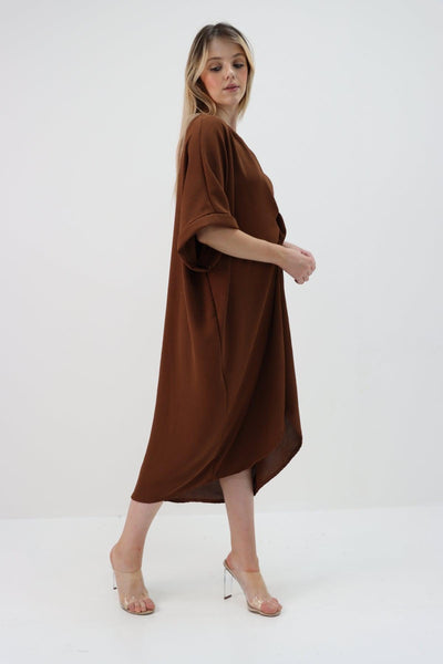 Made In Italy Twisted Plain Tunic Dress - Lashra Fashion