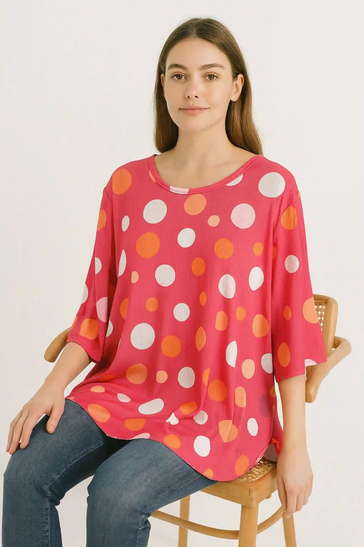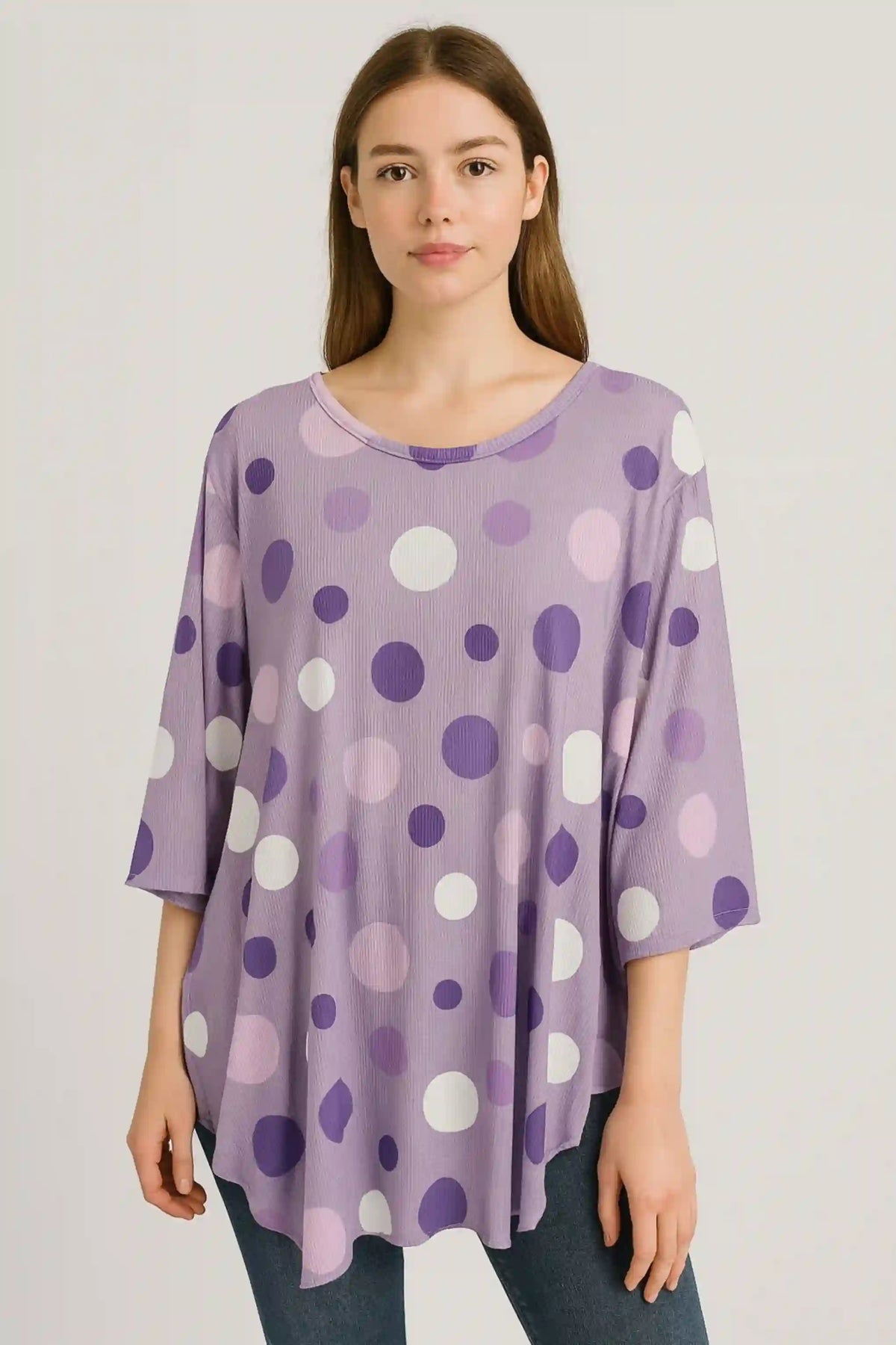 Add this Made in Italy Polka Dot Short-Sleeve Oversized Tunic Top to your collection now. Crafted from a soft and breathable 50% viscose and 50% polyester blend, it offers a smooth drape and all-day comfort. The polka dot is women’s most favourite design and one of the best Italian fashion trends that is following from the vintage era.